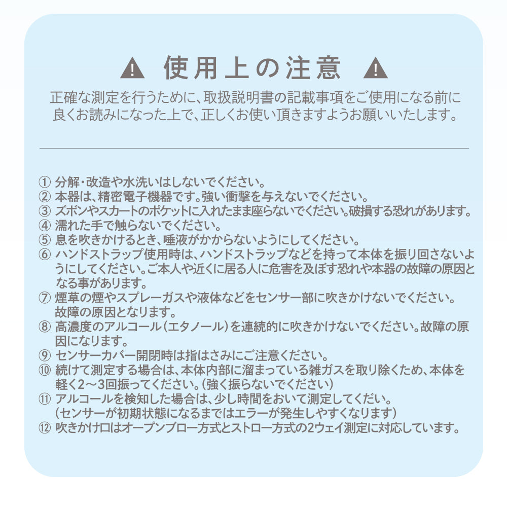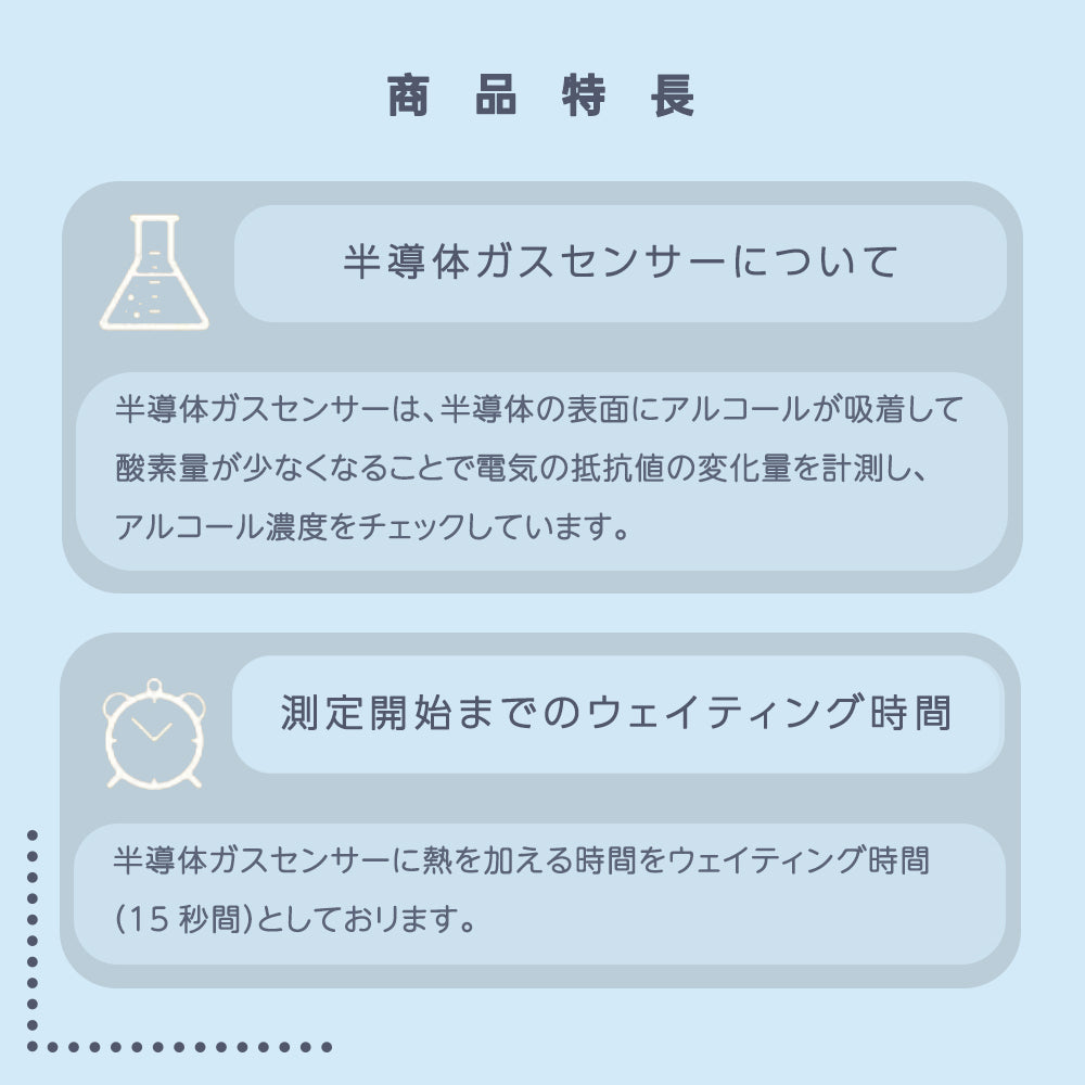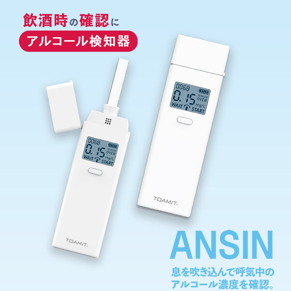「アルコールチェッカーANSIN」は、安心・簡単にアルコールの濃度を測定することができる優れた検知器です。使用方法もとても簡単で、ただ息を吹きかけるだけで検知が可能です。これにより、アルコール濃度を気軽に測定し、安全な運転や健康管理に役立てることができます。また、本製品は非常に正確な測定結果を提供し、信頼性の高さも特徴です。コンパクトなデザインなので、持ち運びにも便利です。アルコールチェッカーANSINを使用することで、アルコール濃度を把握し、健康と安全を守りましょう。