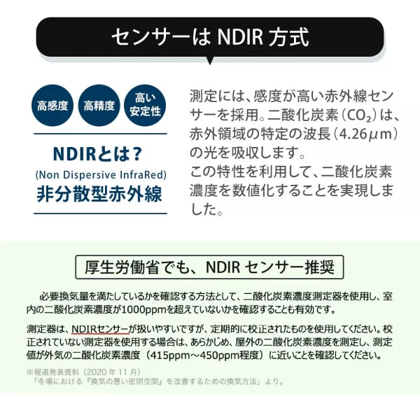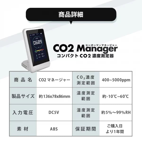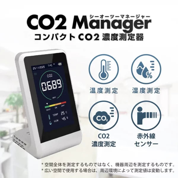CO2マネージャーは、二酸化炭素濃度を見える化するためのコンパクトな測定器です。この商品は、感染リスクを考えるために必要な情報を提供します。例えば、密閉空間や人が集まる場所での二炭素酸化濃度の監視に活用できます。測定結果は、音声ディスプレイに表示されるので、状況を一目で把握できます。さらに、CO2レベルが高くなるとアラートが鳴るため、早めの対策が可能です。ですので、気軽に持ち運べることもできます。感染リスクの軽減のためにCO2マネージャーをぜひお試しください。
