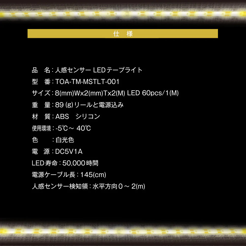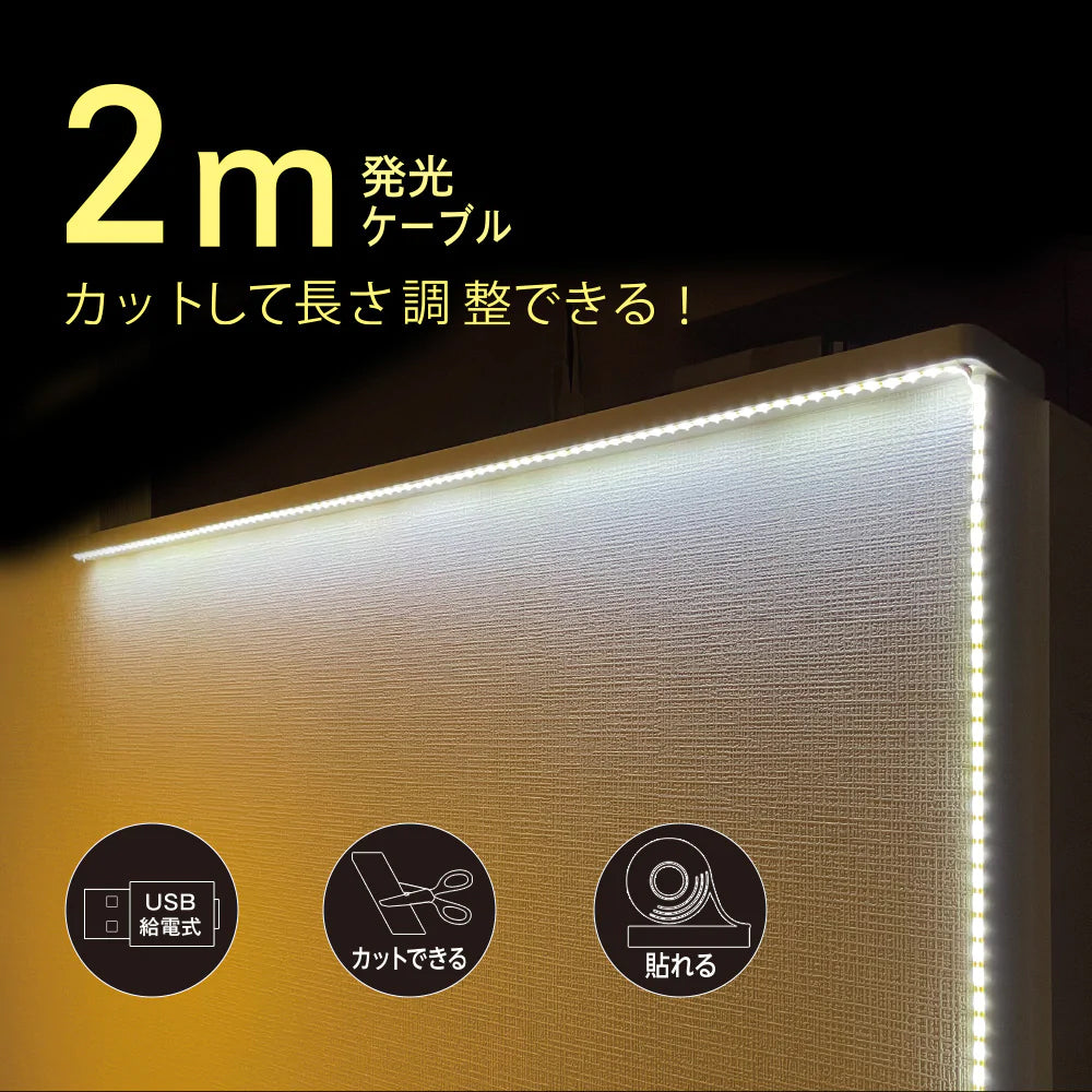 人感センサーLEDテープは、おしゃれなインテリアを演出するのに最適なアイテムです。2mの長さで、調光機能が搭載されており、お好みの明るさに調節することができます。さらに、必要な長さにカットすることも可能です。リモコンも付属しているので、手元から簡単に操作できます。人感センサーが付いているので、人が近づくと自動的に点灯し、電力の節約にもなります。お部屋のアクセントや間接照明として、ぜひご活用ください。