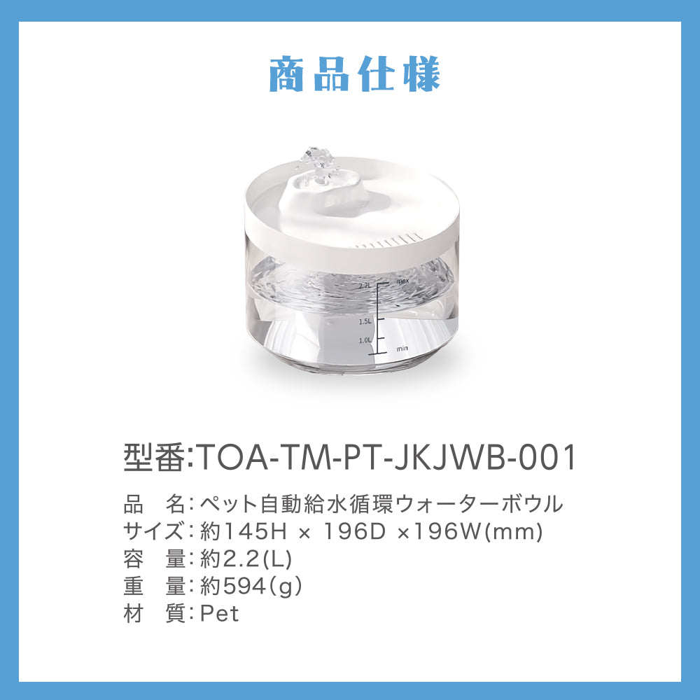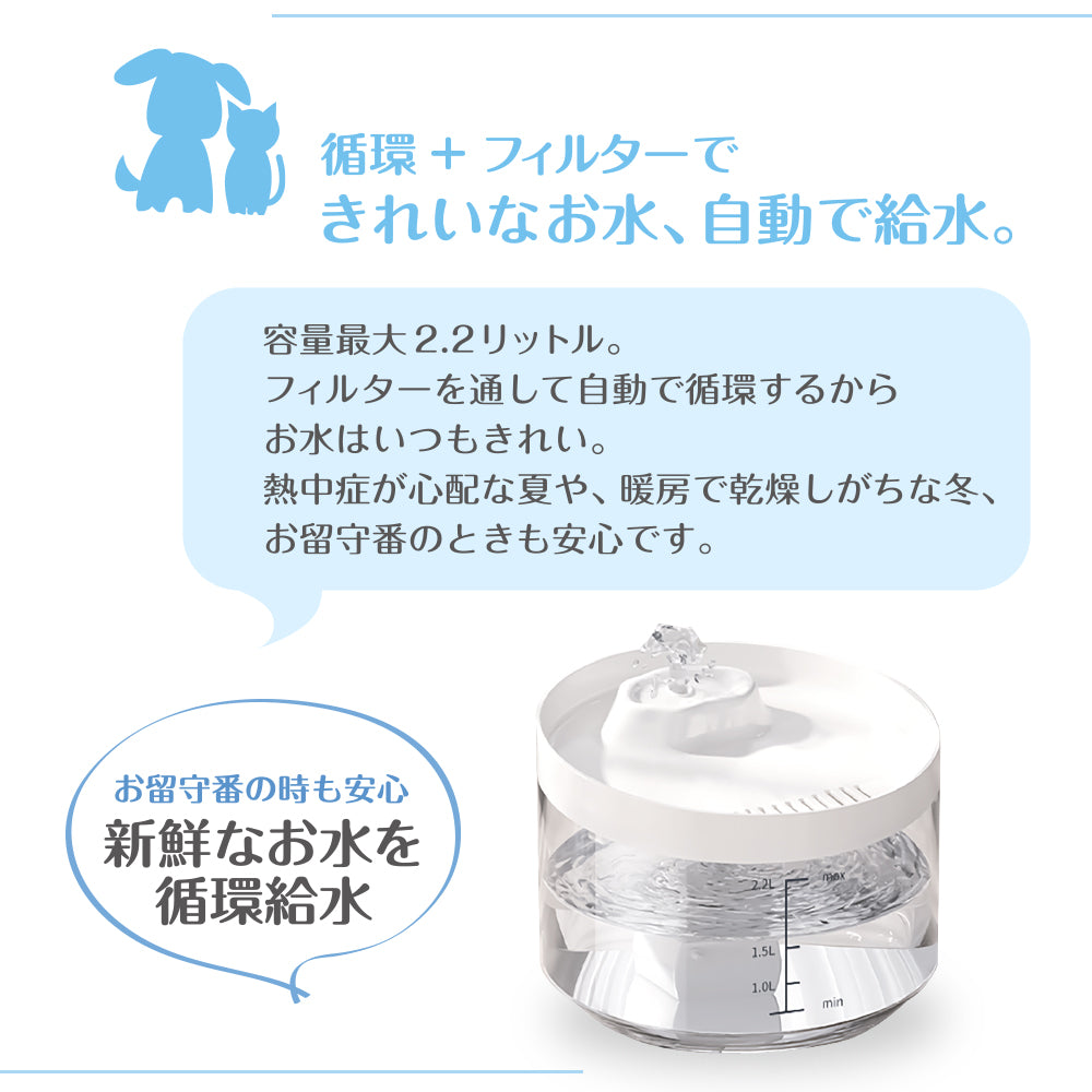 ペット自動給水循環ウォーターボウルは、ペットのお留守番中も安心して使える便利なアイテムです。暑い季節には特に、ペットの熱中症対策にも役立ちます。新鮮なお水を循環給水することで、いつでも清潔な水を提供することができます。自動給水機能により、ペットが飲みたい時に自由に飲むことができます。また、循環給水により、お水が腐ることもありません。ペットの健康を守りながら、快適な生活を送るために、ぜひこのウォーターボウルをご利用ください。