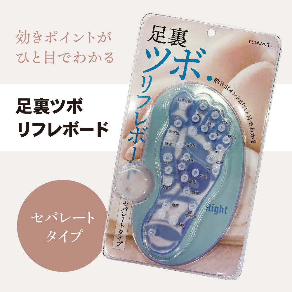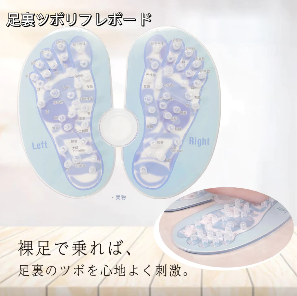 足裏ツボリフレボードは、足裏のツボを刺激してリフレッシュ感を与える健康グッズです。効くポイントが一目でわかるデザインで、自分の足裏のツボを的確に刺激することができます。血行促進効果もあり、疲れた足をスッキリとさせます。さらに、コンパクトなサイズなので持ち運びにも便利です。セパレートタイプなので、足裏全体をケアするだけでなく、特定のツボに集中的に刺激を与えることも可能です。手軽に健康をサポートしたい方におすすめのアイテムです。