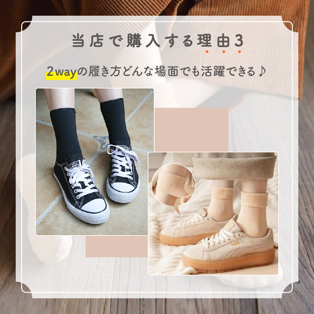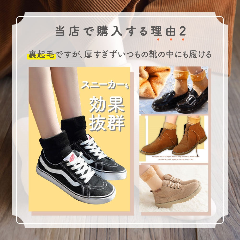 「2」裏起毛ですが、厚すぎずいつもの靴の中にも履ける。