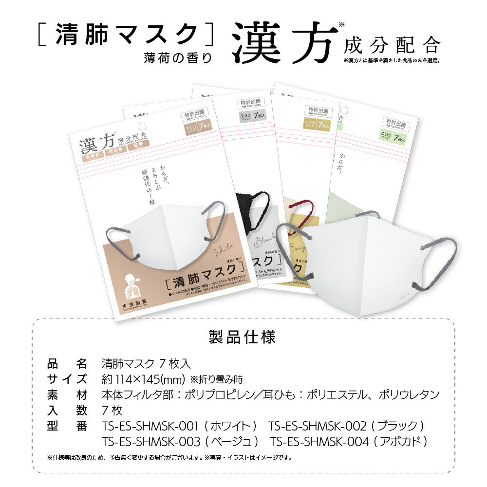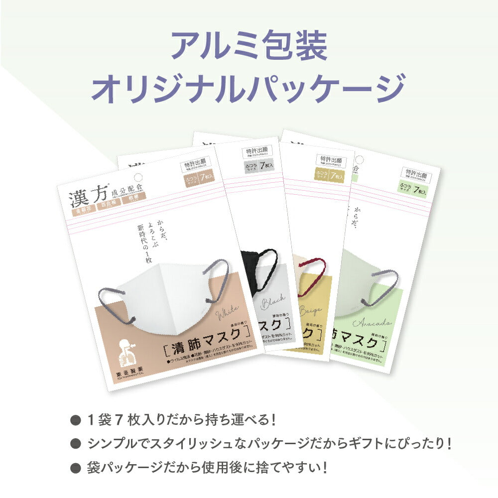 【選べる4色】清肺マスクは、漢方成分を配合し、肌に優しく呼吸がしやすい高品質な不織布を使用したマスクです。漢方成分の力で、日々の生活の中での肺の健康をサポートします。さらに、肌に優しい素材を使用しているので、長時間の装着でも快適な着用感が得られます。さまざまなシーンで活躍すること間違いなしのマスクです。色も4色から選べるので、お好みに合わせてお選びいただけます。清潔感のあるデザインで、おしゃれにもこだわりたい方にもおすすめです。日常の健康管理にぜひお役立てください。