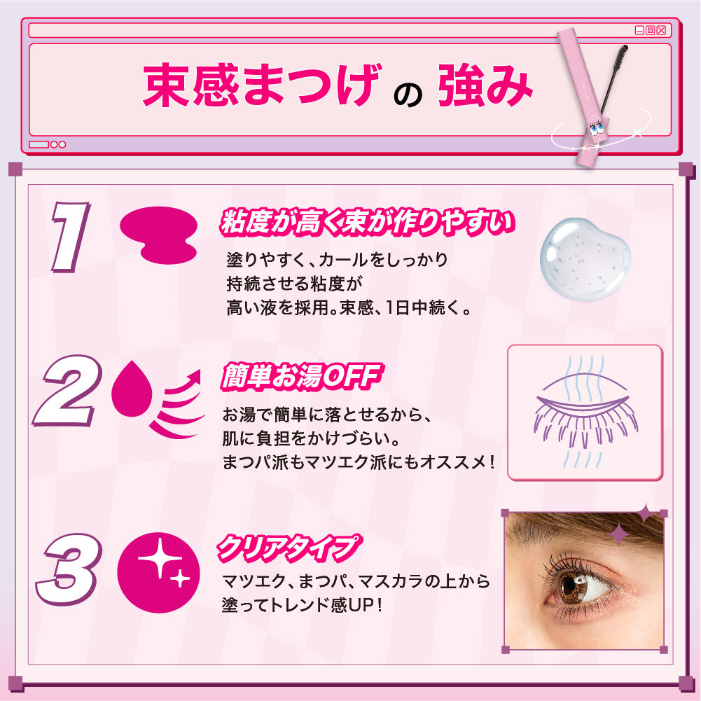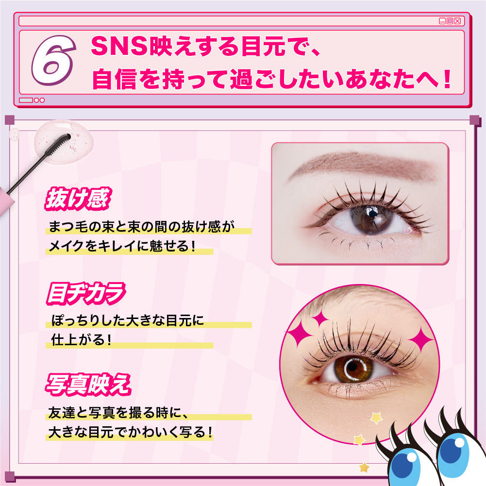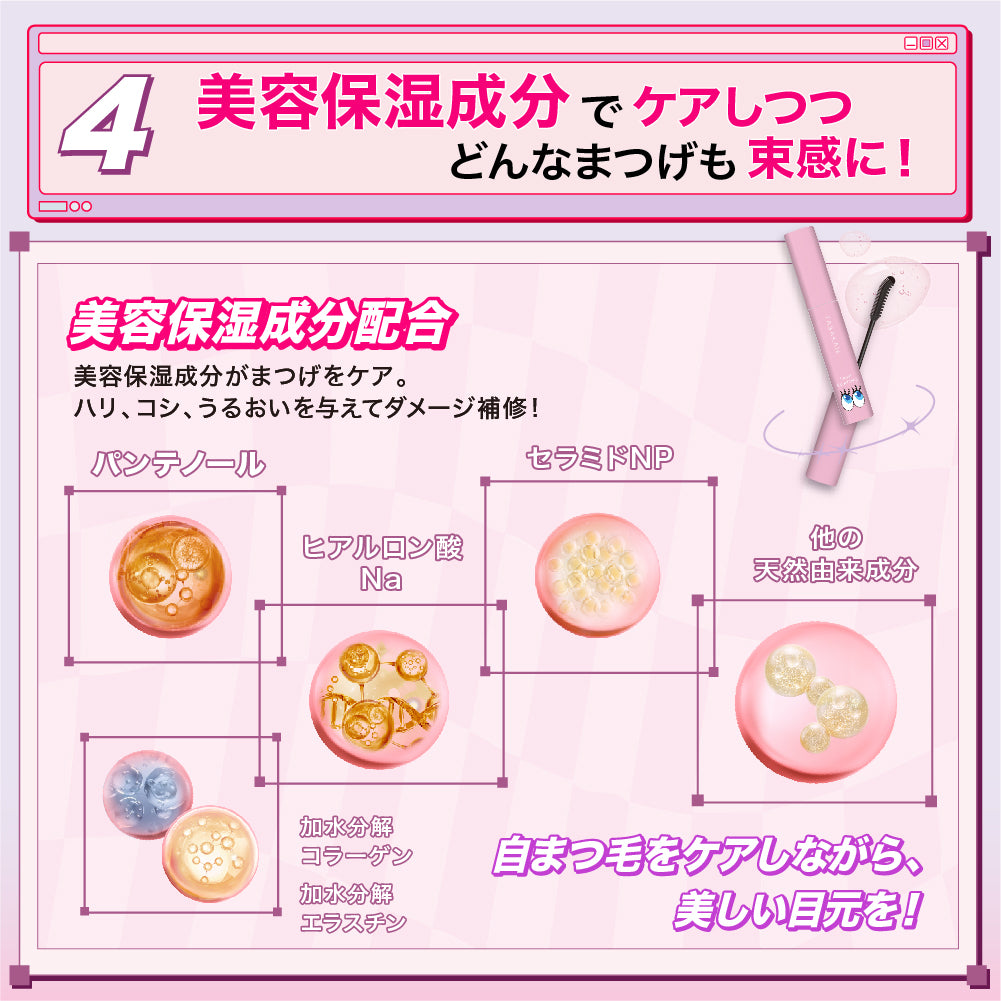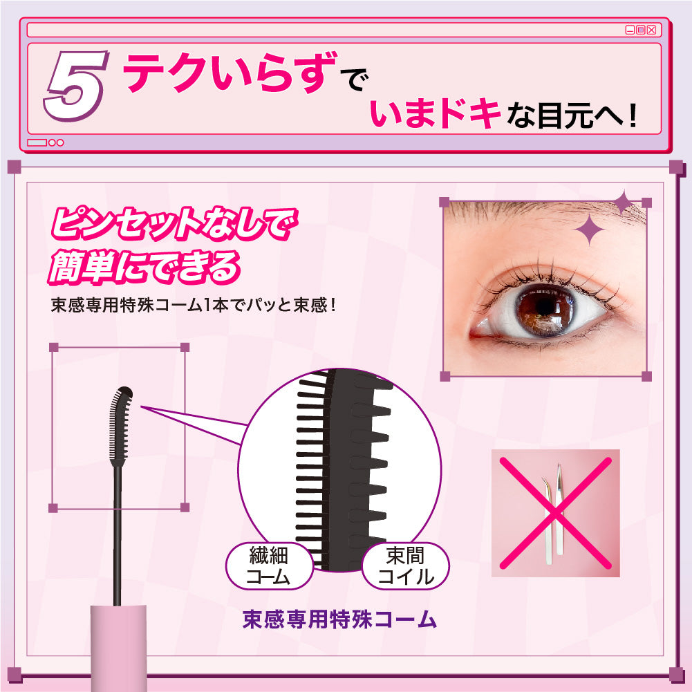 特別設計コームで、細かい部分までしっかり仕上げ、理想の目元が長時間続きます。