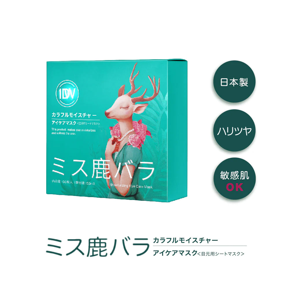 「カラフルモイスチャー アイケアマスク」は、60枚入りのアイケアマスクです。ミス鹿バラが手がける日本製の商品で、ハリツヤのある美しい肌を目指す方や敏感肌の方にも安心してお使いいただけます。カラフルなパッケージは目を引き、楽しさを感じられるデザインとなっています。マスクはしっかりとした柔らかさで、目元にぴったりと密着し、しっかりと美容成分を浸透させます。日々のスキンケアに取り入れることで、素肌美人を目指してみませんか?