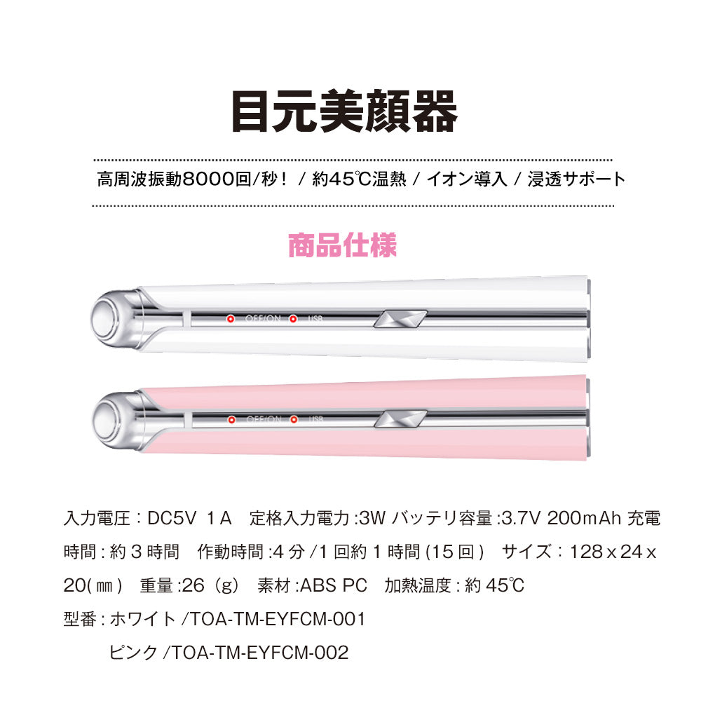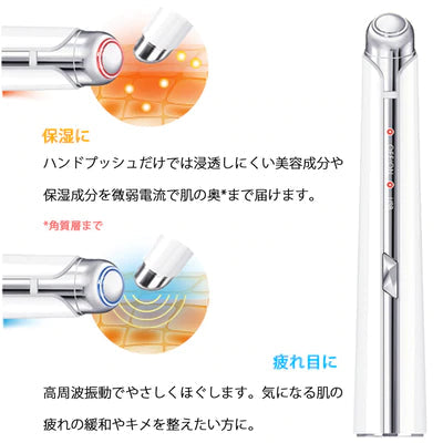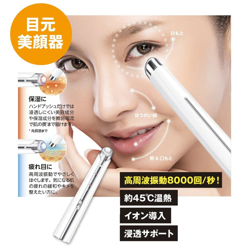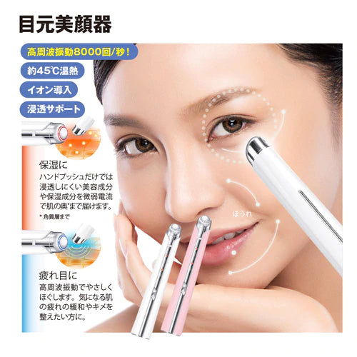 目元美顔器は、持ち運びに便利な美顔器です。高周波振動による優しい刺激で、目元のお肌をケアします。温熱と冷感の切り替えもできるので、お好みのケアが可能です。これ1台で、目元のお悩みを解消することができます。手軽に使えるので、忙しい毎日でも続けやすいです。目元の美しさを保ちたい方にぴったりの商品です。是非お試しください。