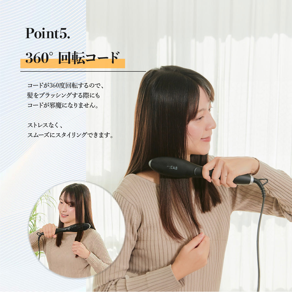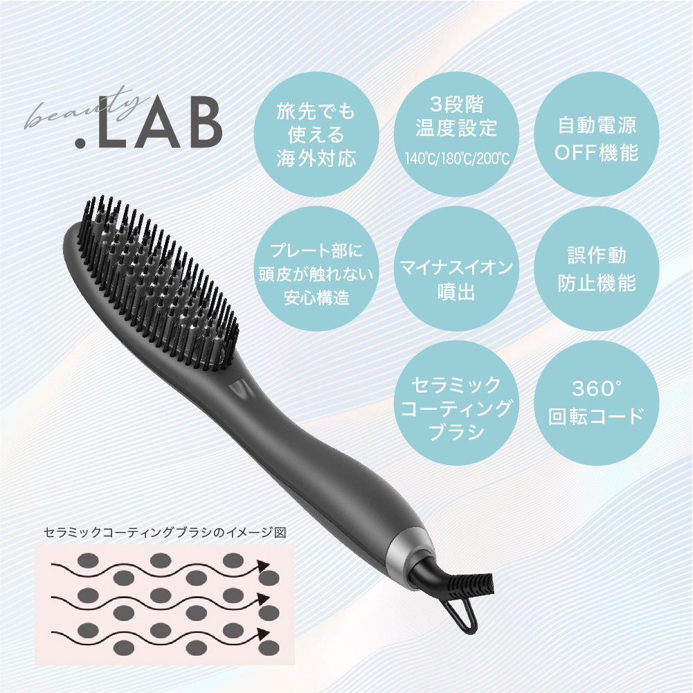 BEAUTY.LAB ストレートヘアブラシは、髪を美しくストレートに仕上げるためのアイテムです。3段階の温度設定が可能で、髪の状態に合わせて適切な温度を選ぶことができます。さらに、セラミックコーティングが施されているため、髪へのダメージを極力抑えながら、スムーズな仕上がりを実現します。追求する方にぜひおすすめのアイテムです。