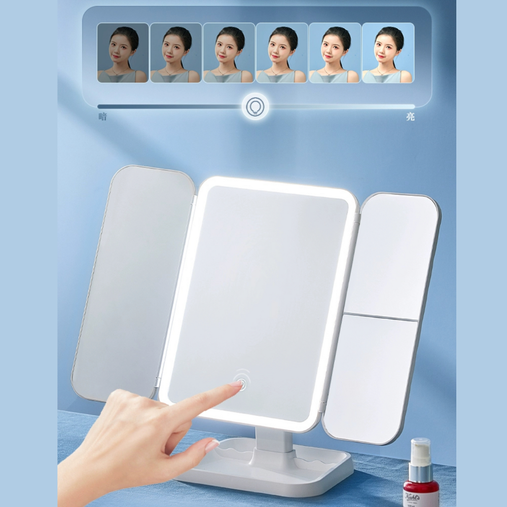 LED三面鏡は、化粧やメイクをする際に大変便利なアイテムです。美しい女優ライトが照らす明るい光は、メイクをするための照明として最適です。三面鏡なので、顔のどの角度からでも自分の姿を見ることができ、見やすさも抜群です。朝の忙しい時間でも、このLED三面鏡を使えばメイク時間を短縮することができます。鏡の前で自分を見つめる時間が楽しくなり、美しさを引き出すための必須アイテムとなることでしょう。是非、このLED三面鏡で素敵なメイクタイムをお楽しみください。