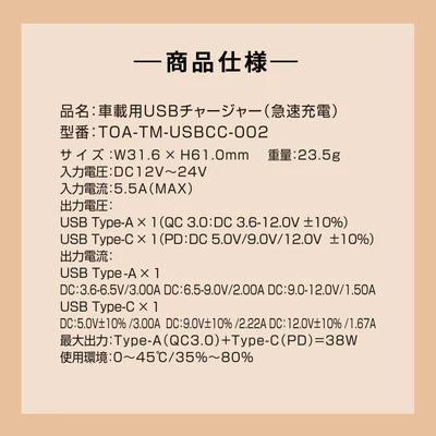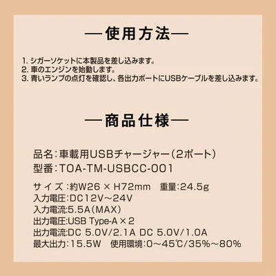 車の中でスマートフォンやタブレットを充電したいとき、この車用チャージャーがとても便利です。USBポートが2つ搭載されており、一度に2台のデバイスを充電することができます。さらに、急速充電に対応しているため、充電が早く終わります。また、重さも従来のものよりも50%軽量になっており、持ち運びやすくなっています。ドライブ中や運転中も安心して充電ができるので、長時間の移動や出張時にも重宝します。お好みに合わせて2種類のデザインから選ぶことができるので、車の内装にも合わせやすいです。便利さとデザイン性を兼ね備えたこの車用チャージャーで、快適なカーグッズライフをお楽しみください。