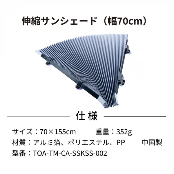 この車内用伸縮サンシェードは、フロントガラスが広い車の救世主です。幅70cmで伸縮性があり、フィット感が抜群です。強力な吸盤を使用しているため、しっかりと固定できます。シンプルなデザインながらも機能性も兼ね備えているので、車内の日除けやプライバシー保護に最適です。暑い夏の日差しや車内の高温を防いでくれるので、快適なドライブを楽しむことができます。使い方も簡単で、必要な際にはすぐに展開できます。車の乗車中や駐車中にもご使用いただけます。おしゃれなデザインで、お客様の愛車にもぴったりです。ぜひ、この商品で快適なカーライフをお楽しみください。