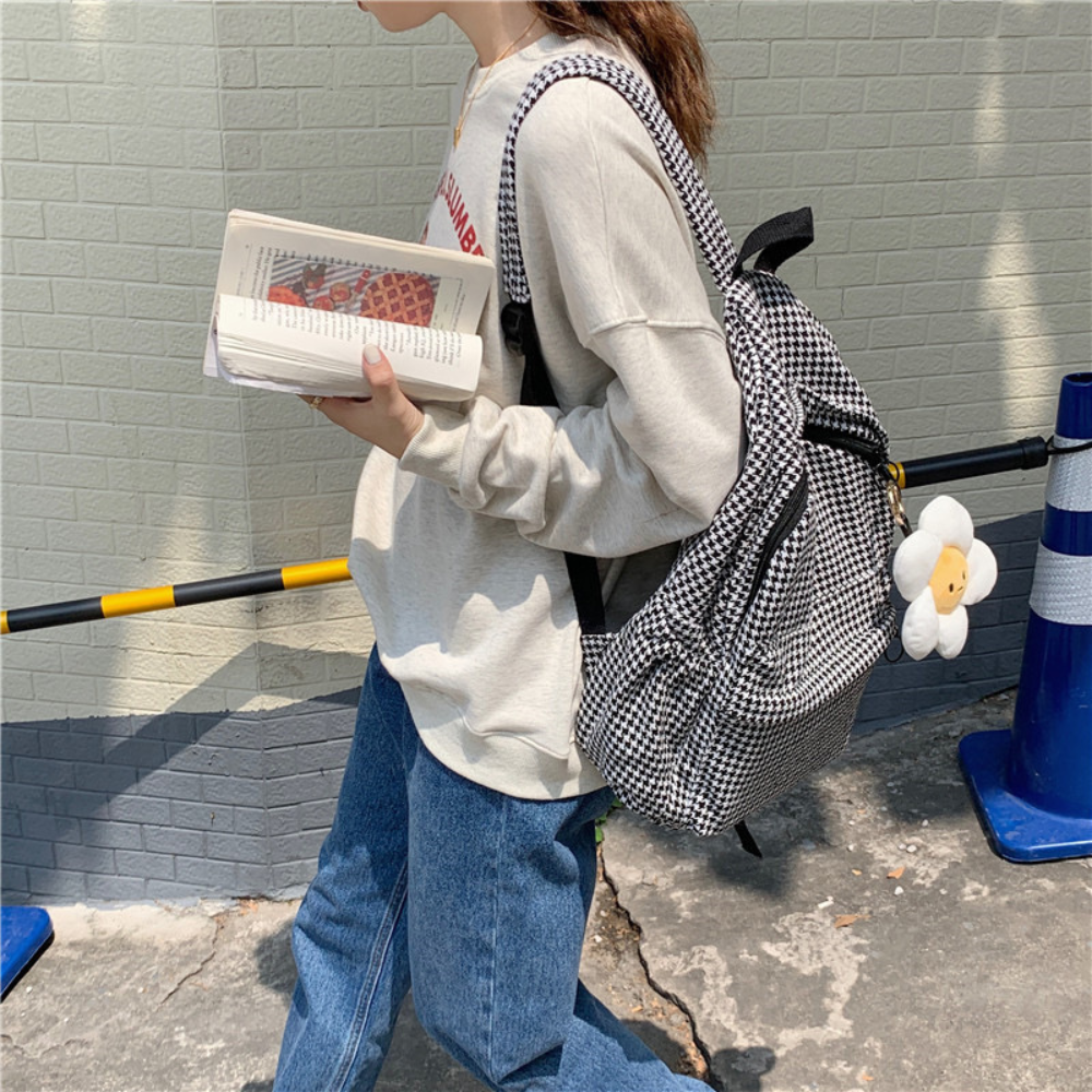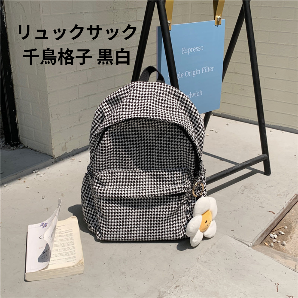 「リュックサック千鳥格子」は、かわいさとおしゃれさが詰まった大容量のリュックサックです。通学や学生の方にぴったりのデザインで、毎日使っても飽きない魅力があります。千鳥格子の柄がアクセントとなり、おしゃれな雰囲気を演出します。また、たっぷりの収納スペースがあり、荷物をスマートに収納できます。軽量で背負いやすく、長時間の使用でも疲れにくい設計です。機能性とデザイン性を兼ね備えた「リュックサック千鳥格子」は、日常使いにぴったりのアイテムです。