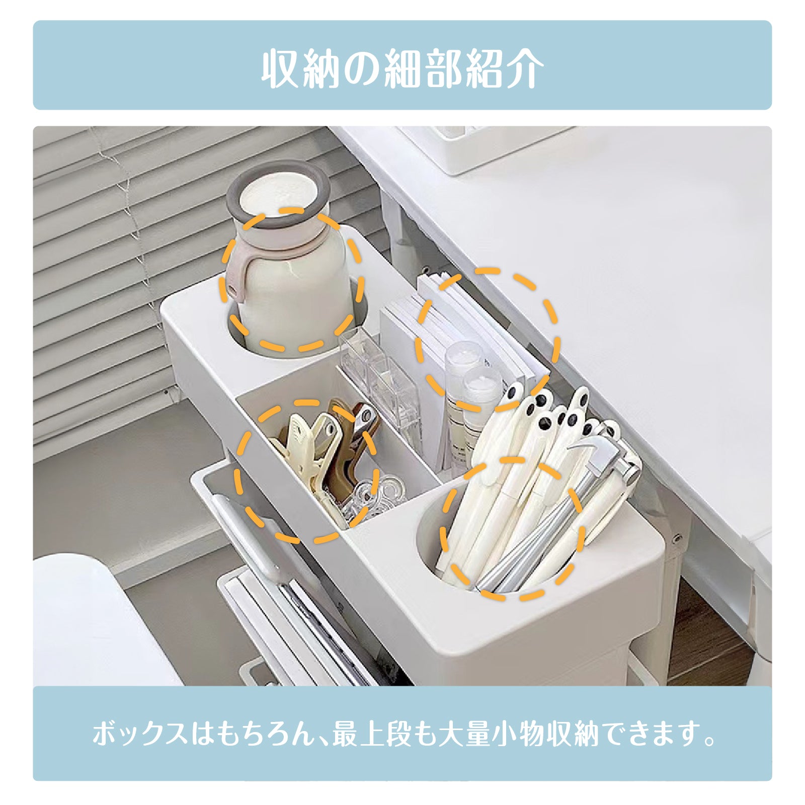 テレワークや学習机のサイドラックにぴったり。小物の整理にも最適です。自宅のリビング、書斎、キッチンはもちろん、学校、学生寮、喫茶店、コンビニなど、さまざまな場所で使える多機能ワゴン。絵本棚やオフィスのサブ収納としても◎