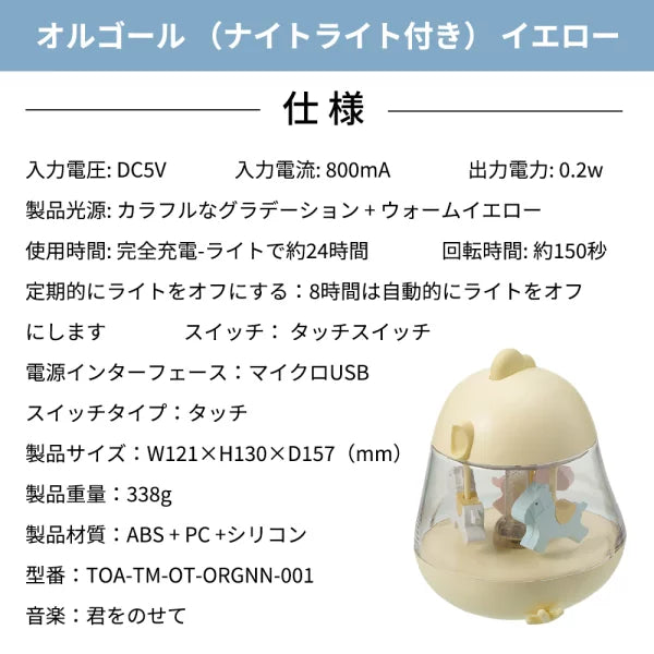 この可愛らしいナイトライト付きオルゴールは、メリーゴーラウンドのデザインが特徴です。キュートでカラフルなLEDライトが、部屋を幻想的な雰囲気に包み込みます。オルゴールの音色とともに、まるで夢の中にいるような気分に浸れます。寝る前のリラックスタイムや、お部屋のインテリアとしてもおすすめです。可愛らしさと機能性を兼ね備えたこの商品は、大切な人へのギフトにもぴったりです。