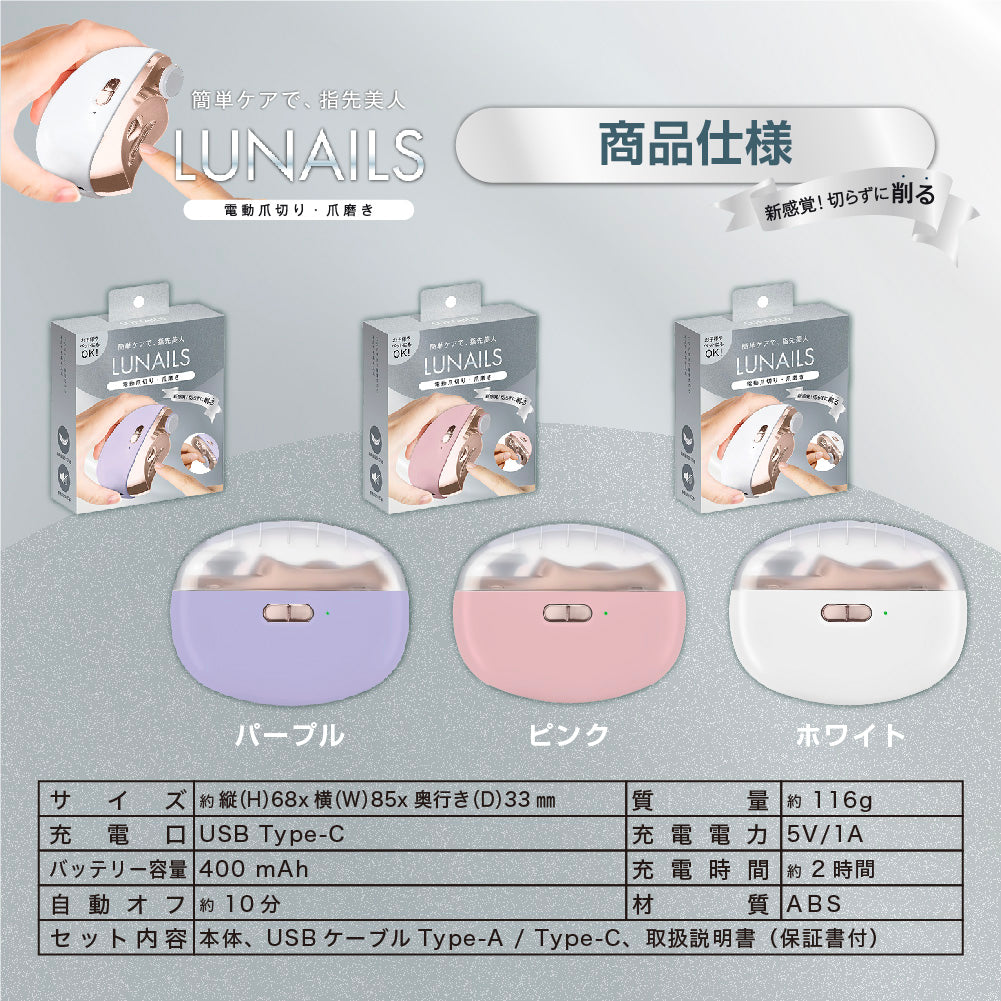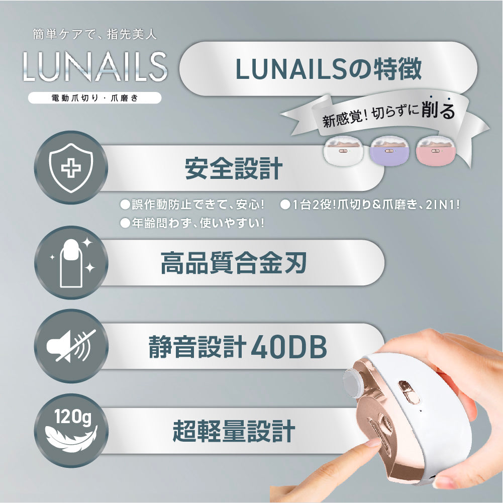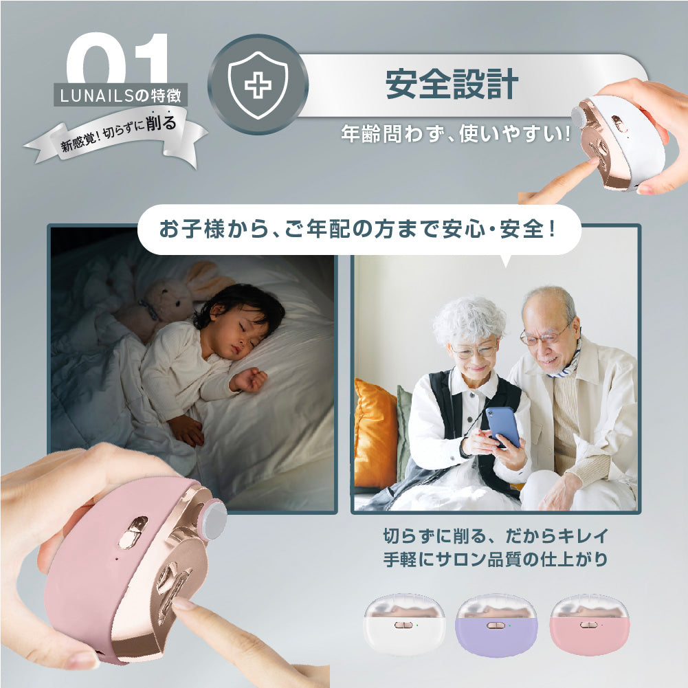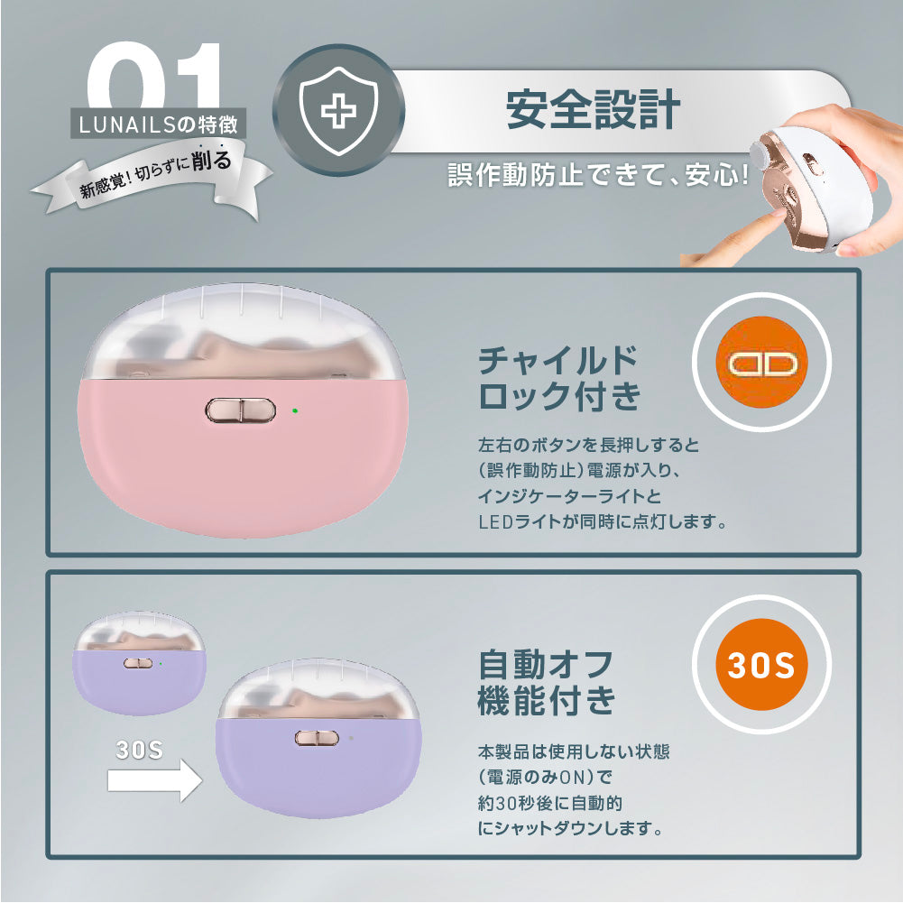 高度な電気モーター技術と高速刃で爪を削るように切り、電動の爪磨きにより滑らかに爪を整えることができます。